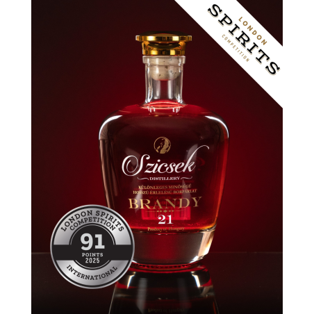 The Szicsek Pálinka Distillery is proud to present its newest, premium quality brandy drink, which has been aged for 21 years in carefully selected Zemplén oak barrels. This long aging time has resulted in a uniquely rich and complex flavor, reminiscent of the finest brandies.
